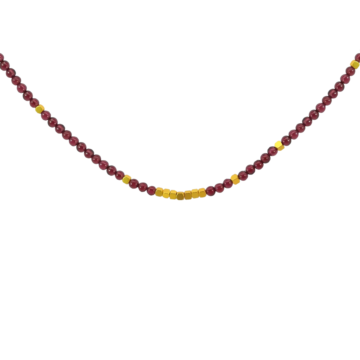 Ez a kézzel készült nyaklánc a bordó jáde gazdagságát és a sárga arany színű hematit kockák eleganciáját ötvözi, így tökéletes választás azoknak, akik az ünnepi ragyogást keresik. A bordó jáde nemcsak látványos, hanem sokak szerint pozitív energiát, harmóniát és védelmet biztosít viselőjének, így a karkötő nemcsak stílusos, hanem jelentéssel bíró kiegészítő is. A nyaklánc finom sárga aranyozott hematit kockái luxus hatást kölcsönöznek, kiemelve a bordó jáde mély tónusait. A sárga aranyozott ezüst lánchosszabbítónak köszönhetően a nyaklánc mérete könnyedén állítható, így kényelmes viselet minden alkalomra. Ez a nyaklánc ideális választás ünnepi eseményekre, különleges alkalmakra, de ajándéknak is tökéletes, ha egy elegáns, energiát sugárzó ékszert keresel.