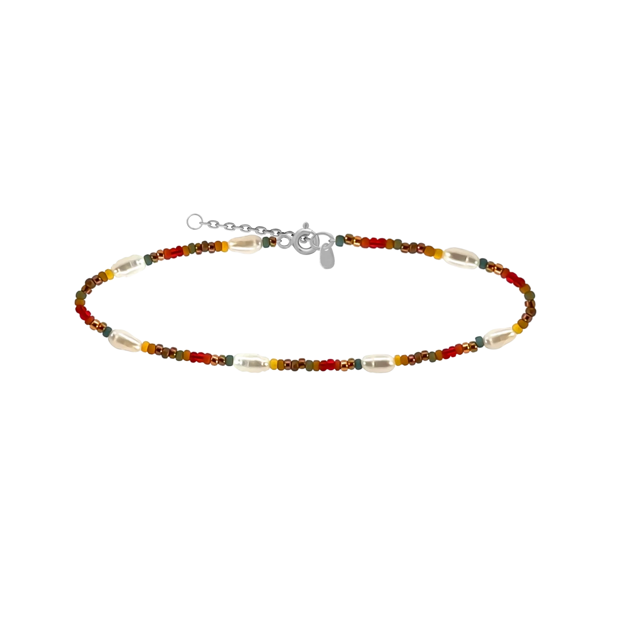 A természet színei a csuklódon. Fedezd fel az ősz varázsát ezzel a fiatalos és lendületes karkötővel, amelyet az évszak meleg árnyalatai inspiráltak! A gondosan válogatott design gyöngyök – az aranyló barna, sárgás és pirosas árnyalatú kásagyöngyök – harmonikusan ötvöződnek a gyengéd, rizsszem formájú fehér édesvízi gyöngyökkel, megidézve a lehulló levelek és a napfényben ragyogó természet színeit. A karkötő nemcsak elegáns és természetes megjelenésű, hanem praktikus is – a lánchosszabbítóval könnyedén méretre állítható, így mindig tökéletesen illeszkedik.