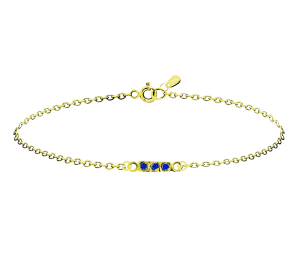 3 Kék Cirkónia Féldrágaköves Sárga Arany 14K Karkötő