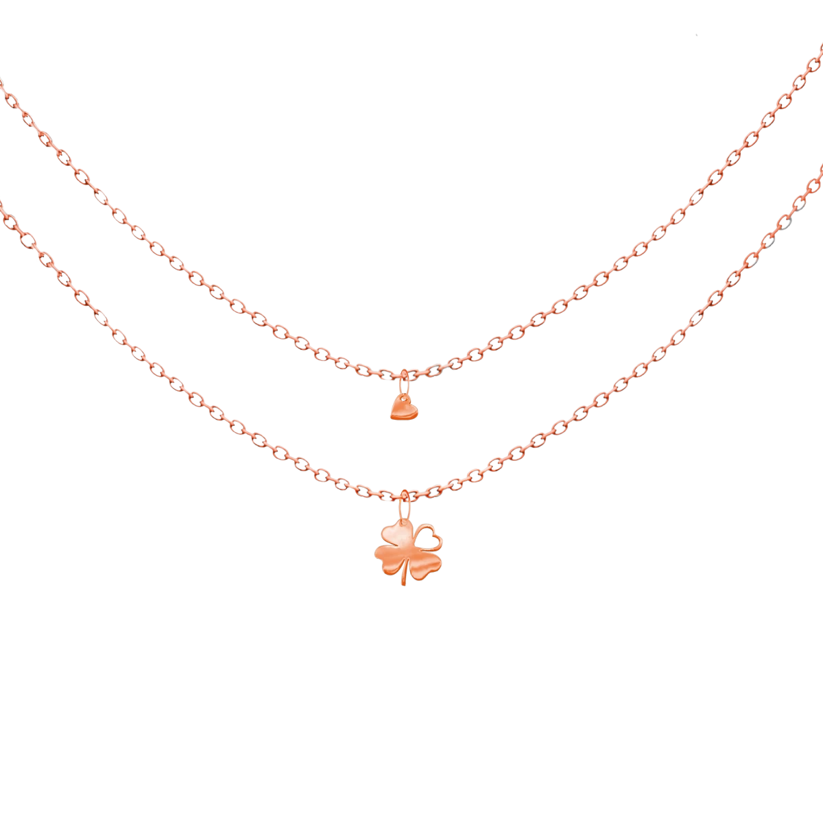 Lóhere Szív Vörös Arany 14K Páros Nyaklánc