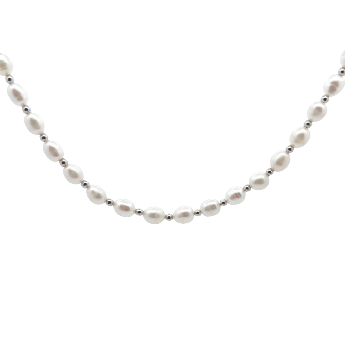 Különleges alkalmakra és mindennapi viseletre egyaránt tökéletes választás a nagyobb rizsszemű gyöngyből készült nyakláncunk, amely magában hordozza az időtlen elegancia és a modern design harmóniáját. Ez a lenyűgöző ékszer nem csak egy kiegészítő, hanem egy kijelentés, egy stílus, amely kiemeli viselőjének egyedi szépségét és eleganciáját.